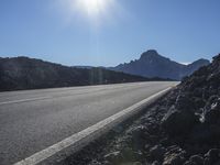 A road in the highlands of Tenerife, Spain, winding through the stunning volcanic landscape. Clear skies and sunshine highlight the natural beauty of the rural mountain scenery. A perfect day for a drive.