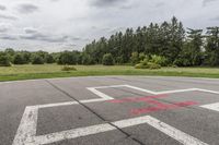 Scenic view of a road in Ontario, Canada surrounded by lush green landscape. The road is lined with trees, grass, and vegetation. The beautiful blue sky with fluffy clouds and contrails adds to the picturesque view. There is a crosswalk and a helipad nearby, providing easy access to the public space. The asphalt road surface is well-maintained, making it perfect for a leisurely drive through the serene countryside of Ontario. The image captures the natural beauty and tranquility of this rural area in Canada.