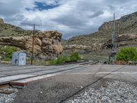 A scenic view of a road in Utah, with mountains in the background. The road cuts through the landscape, surrounded by nature and clouds. A perfect day to explore the beauty of the Utah landscape.