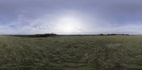 Scenic Brandenburg landscape on a sunny day. Lush grass surfaces cover rolling hills and open spaces in rural Germany. Clouds dot the sky, highlighting the valley's beauty and serenity.