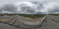a mirror photograph on a road in the middle of nowhere in a cloudy sky with some clouds