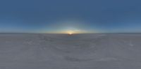 Endless salt flat landscape under a clear sky, with clouds dotting the horizon at dawn. The open space stretches like a desert, offering a view of surreal beauty typical of salt lake environments.