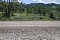 A scenic drive along Ilium Road in Telluride, Colorado. The off-road track winds through lush forests and grassy meadows, with breathtaking mountain views. The landscape showcases the natural beauty of this wilderness state park.