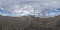 A scenic drive through the highlands of Utah, with a curved mountain as the backdrop. The road is empty, creating a sense of open space and tranquility. Partly cloudy skies add depth to the landscape.