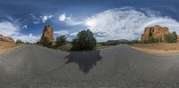 the photo is taken on a 360 - view of the street in the canyons