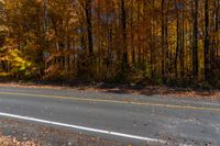 This beautiful photo showcases a paved road in Toronto, Ontario, Canada. Lined with leaf-covered trees, the road is surrounded by a stunning forest. The clear sky above enhances the natural beauty of the scene. With yellow leaves falling to the ground, this picturesque road is a perfect representation of autumn in Canada.