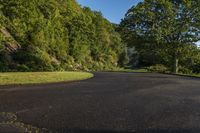 A scenic two-lane road in North Carolina, surrounded by lush forests and open spaces. The road curves through the mountainous landscape, offering breathtaking vistas. Perfect destination for recreational activities and nature lovers in Appalachia.