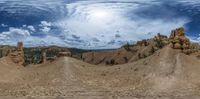there is a panorama of a desert and sky with clouds and some rocks in the background