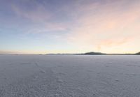 an image of a lake during the day that appears to be an empty field with snow on it