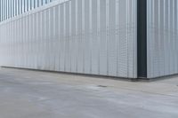 A man riding a red skateboard along a sidewalk in a bustling city. The industrial building features steel panels, showcasing modern architecture in China's business district. The concrete sidewalk and urban design create a vibrant city life atmosphere.