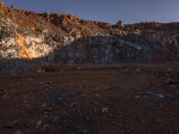 A rugged off-road track in the mountainous landscape of Shangri-La, Yunnan, China. The brown rock formations resemble the surface of Mars, creating a unique and otherworldly atmosphere. Clear skies showcase the natural beauty of this Asian wilderness.