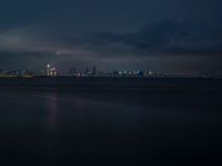 This stunning photograph captures the vibrant city lights of Shenzhen, China, illuminating the coastal waters below. The dark night sky is filled with billowing clouds, adding an atmospheric touch to the scene. The artificial lights create a dazzling cityscape that extends towards the horizon, showcasing the urban beauty of Guangdong province. The gentle waves of the water add a calming effect, perfectly complementing the dynamic city skyline. This image beautifully portrays the magic of a city that never sleeps and the allure of its coastal setting.