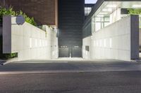 the large concrete wall has been illuminated by recessed lights at night on either side of it