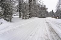 Snow Covered Road Through a Canadian Forest