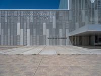 A modern urban plaza in Zaragoza, Spain. The open space features sleek, modern architecture with clean lines. The clear sky provides a stunning backdrop to the architectural profile. The perfect day to explore Europe's architectural wonders.