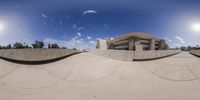 Spain's Modern Skateboard Ramp: Reflection of Sky and Sun