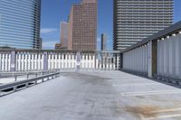 This stock photo showcases the cityscape of Houston, Texas, USA. The image captured during the day showcases an urban setting with high-rise buildings, skyscrapers, and an impressive downtown area. The straight road leads the viewer's eye into the city, with a line of buildings on either side. The walkway and bridge add architectural interest, while the open space and parks provide a relaxing atmosphere amidst the concrete jungle. The clear sky and the reflection on the surface give a feeling of space and tranquility. This photo represents the metropolitan area with its bustling city life, business districts, office buildings, condominiums, and parking garages, all contributing to the real estate and business growth in Houston, Texas.