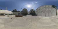an old building with circular concretes on the outside and inside of it is a concrete floor