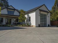 A suburban home with a clear sky in the background. The concrete surface of the road leads to the property, surrounded by trees and vegetation. The building features windows, doors, and fixtures, creating an inviting and pleasant atmosphere.