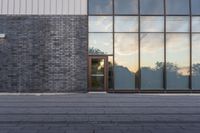 This is an image of a modern residential building in downtown Toronto, Canada. The architecture features a sleek facade with floor-to-ceiling glass walls that reflect the morning sunlight. The building is situated in an open space surrounded by trees, giving it a suburban feel within an urban setting. The city skyline and business district can be seen in the background, creating a contrast between the modern design and the bustling city life. This photo captures the essence of urban design and the blend of residential and commercial spaces in Toronto.