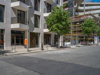 A sunny day in Berlin, Germany, showcasing the modern architecture of a residential area. The urban design features a sleek road surrounded by buildings. A perfect representation of city life in Europe.
