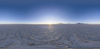 Dawn breaks over Salt Lake in Utah, USA. Clear sky illuminates the salt desert and mountain landscape, with the sun visible in a serene nature setting. A quintessential Utah morning.