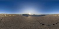 A stunning artistic photo capturing the reflection of a camera on the asphalt at sunset in Holland. The calm and serene atmosphere is enhanced by the clear sky and the beautiful shades of orange and blue. A true masterpiece by Andy Clark.