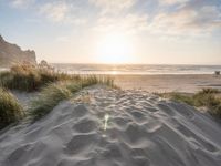 Experience the beauty of a gloomy morning at a coastal beach in California, USA. As the sun rises over the sand dunes, its rays shine down, casting a serene glow on the beach. The gentle rush of the water against the shore creates a soothing atmosphere, perfect for nature enthusiasts and recreational activities. The open space of the beach and desert surroundings provide ample opportunity for outdoor adventures. Don't miss this stunning landscape and arrive at your dream destination for a break of day by the ocean's edge.