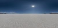 the sun shines over a vast, wide expanse of salt flats and desert terrain