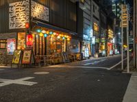 A city street in Tokyo, Japan illuminated by street lights and storefronts. The urban design and artificial light create a vibrant atmosphere. One quarter of Tokyo comes alive at night with restaurants and shops.