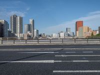 Modern urban cityscape of Tokyo, Japan. Daytime skyline with modern architecture and bridges. Asphalt roads lined with Armco barriers under a cloudy sky. A blend of traditional and contemporary in the heart of Japan.