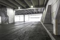 This is a photo of a straight road in Markham, Ontario, Canada. The urban landscape showcases the architecture of the buildings and the concrete flooring of the road. The low angle view highlights the straight line of the road, leading the viewer's gaze towards the tunnel in the distance. The artificial light illuminates the parking deck and the surrounding area. This image represents the modern and urban environment of Markham, a city in Ontario, Canada.