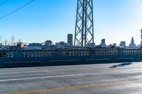 A captivating view of a large bridge in Los Angeles, California, surrounded by a bustling cityscape. The bridge is filled with lots of traffic, while the bright blue sky adds a touch of serenity to the scene. The modern architecture of the high-rise buildings and the urban design of the city create a vibrant atmosphere. The road surface, made of smooth asphalt, guides the flow of vehicles, while electricity powers the city's activities. This stock photo perfectly captures the essence of city life in Los Angeles, USA.