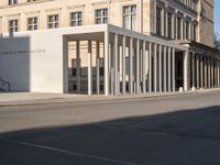 This image captures the essence of city life in Berlin, Germany. The modern architecture and classic designs create a unique urban landscape. The road and asphalt dominate the foreground, casting hard shadows under the bright European sun. The museum in the background serves as a testament to the city's rich history and culture. This photo perfectly showcases the urban design and architectural beauty that Berlin has to offer.