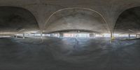 a view of a skateboard ramp through the air tunnel on a skateboarding course