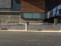 Clear sky day in Los Angeles, California. Modern architecture dominates the cityscape, with office buildings and parking lots lining the streets. The urban design showcases the vibrant city life and bustling business district of Santa Monica.