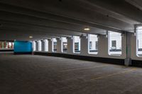 This image captures a typical urban scene in Toronto, Canada. The photo shows an empty parking garage with concrete surfaces and three windows. The grey floor reflects the neutral tone of the urban design. The clear sky and clouds above add contrast to the scene. This photo represents the bustling city life of Toronto, with the parking garage serving as a backdrop to the urban landscape. The vacant space in the garage creates a sense of emptiness and solitude. It is a perfect representation of the city's urban design and infrastructure.