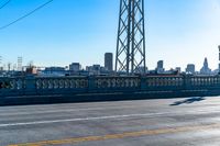 A cityscape of Los Angeles, California, USA. The modern architecture of high-rise buildings and skyscrapers is juxtaposed against the clear sky. The city's urban design features bridges, roads, and water, creating a vibrant metropolis.