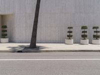 A view of a modern architecture building in downtown Los Angeles, California. The facade features a combination of wood and glass, creating an urban design aesthetic. The surrounding vegetation adds a touch of nature in the concrete jungle.