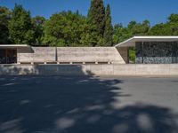 A modern architectural marvel in Barcelona, Spain. The clear sky casts hard shadows on the road, creating an open space for urban exploration. The museum's profile stands against the backdrop of Europe's vibrant city.