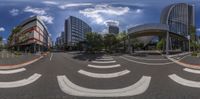 An aerial view of a bustling intersection in Taipei City, Taiwan. Modern buildings and futuristic architecture dominate the landscape. The city is filled with vibrant business districts and public spaces. A clear sky adds to the urban charm.
