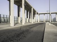 An urban street scene with a road and asphalt surface. The facade of a building with composite materials stands tall, complemented by columns. Streetlights cast a shade on the road, creating a tints and shades effect in the urban design.