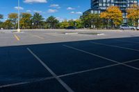 A city street of Toronto, Ontario, Canada with asphalt pavement, urban design, and a hard shadow. The photo was taken during the day with clouds in the sky. In the foreground, there is a house, and in the background, a shopping mall can be seen. The composition captures a beautiful play of light and shadow on the urban surface.