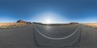 An open landscape in Utah, USA, at dawn. Clear sky and sunshine cast hard shadows on gravel and dirt roads. Green grass and rock surfaces contrast with the grey sky, creating a gloomy yet serene atmosphere.