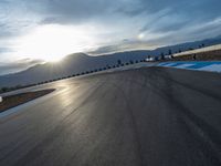 A straight road on a race track in the USA, with asphalt glistening in the early morning sun. Curves and sunny skies set the scene for an exhilarating race. Start your engines!