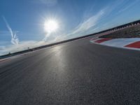 A straight road stretching into the distance in the USA. The clear blue sky adds to the feeling of openness and freedom. A classic American landscape.