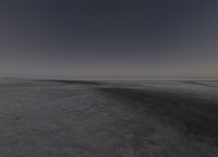 A serene landscape in Utah at dawn. The black desert sand contrasts with the calm, white salt surface of the lake. The clear sky and the horizon create an emotional atmosphere in this natural environment.