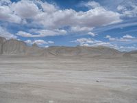 A scenic off-road landscape in Utah's Factory Butte. Open desert space contrasts with the cloud-dotted sky. Dirt and gravel surfaces provide a natural track for adventurers. Explore the beauty of Utah