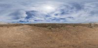 the view from below shows a desert landscape with a half - buried hillside on one side