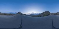 A scenic road in Utah with asphalt winding through the landscape under a clear sky. The sun casts hard shadows at dawn, creating a picturesque break of day. Nature's beauty shines through in this sunny Utah landscape.